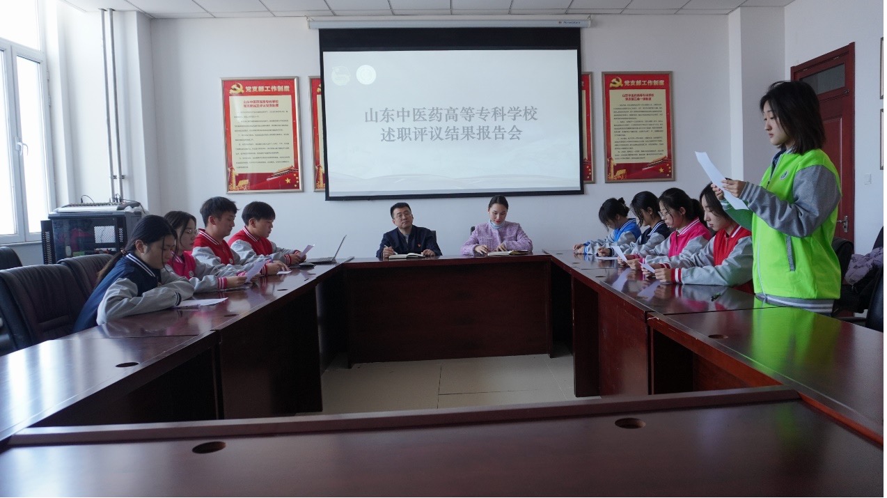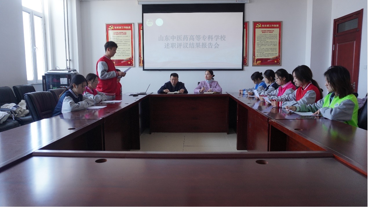 为加强对学生会组织工作人员的监督和管理,全面准确地掌握学生会组织工作人员的工作情况,提高学生会组织工作人员的责任意识、服务意识和大局意识,根据《山东中药高等专科学校学生会组织工作人员述职评议办法》相关文件要求,我校于12月2日在综合楼910会议室,召开2021-2022学年“山东中医药高等专科学校述职评议结果报告会”。参会人员分别为学校团委负责人、学生工作处副处长房光鑫、团委学生会指导老师张娟、21级校级学生会主席团、学生会各部骨干人员。