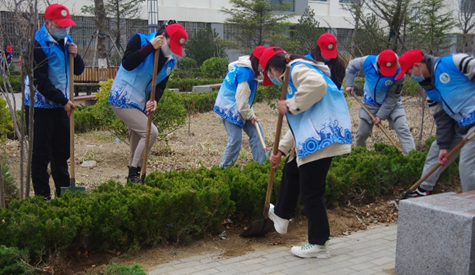 虽是春寒料峭,但现场一片热火朝天。志愿者们在团委老师的统一组织下,手拿铁锹除去杂草,将六、七号学生公寓间的部分松树移植到综合楼北面花坛,经过大家的努力,新栽种的树苗棵棵挺立,处处焕发出春日的勃勃生机。与此同时,中医系志愿者负责在创业园及校门口进行清扫;中药系志愿者负责跑道、人工草坪、篮球场等场地卫生;针康系志愿者负责打扫第二餐厅周边卫生;护理系志愿者打扫商业街及一餐东门的卫生死角;医学系志愿者们清理家属楼区域垃圾。在活动过程中同学们热情高涨,迅速到位,各司其职,各负其责,认真完成所分配的任务,对全校范围内的卫生进行全方位无死角清洁。